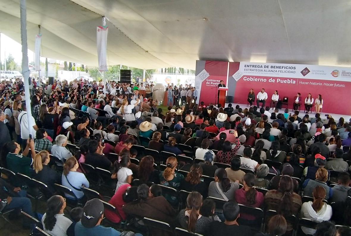 Al medio día del sábado, el gobernador Miguel Barbosa Huerta visitó San Andrés Cholula para entregar calentadores solares, tinacos para agua potable y botes de pintura que serán destinados a vecinos de inspectorías y juntas auxiliares de San Andrés Cholula.