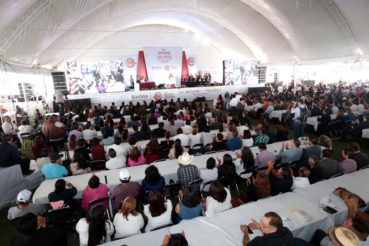 San Andrés Cholula | La presidenta municipal, Karina Pérez Popoca, rindió su Primer Informe con Valores ante cinco mil personas en el Campo San Andrés 1, en la cabecera municipal, en un ejercicio de rendición de cuentas y de democracia.