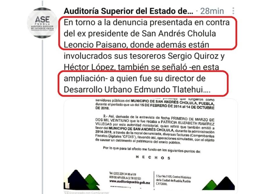 En esta ampliación de denuncia, la ASE involucra además al ex director de Desarrollo Urbano, Edmundo Tlatehui, posible candidato del PAN a la presidencia municipal.