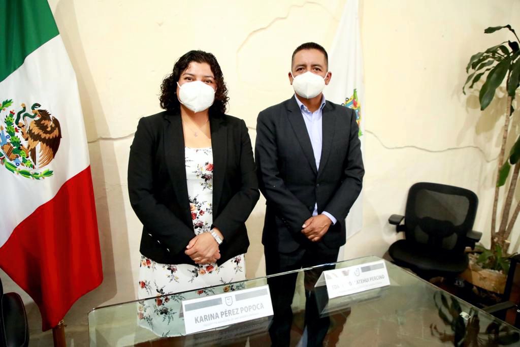 San Andrés Cholula | La presidenta municipal, Karina Pérez Popoca, recibió al edil electo Edmundo Tlatehui Percino para continuar con la entrega-recepción de la administración.