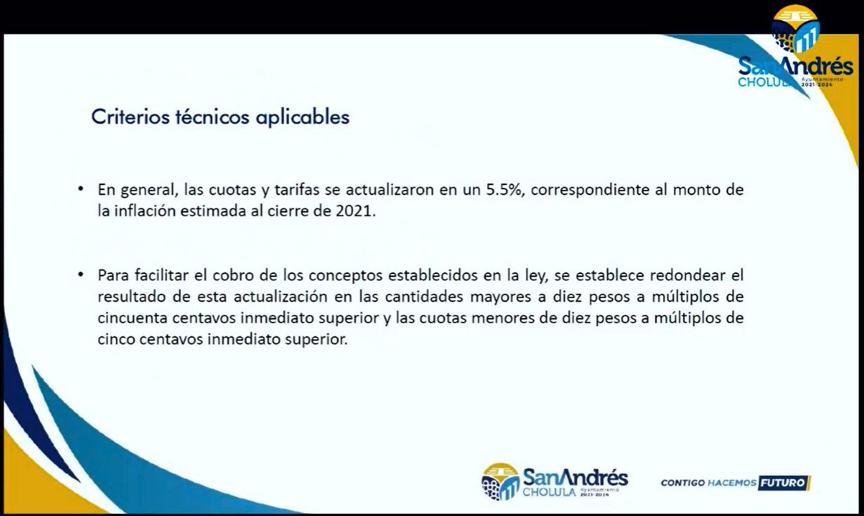 San Andrés Cholula | Los vecinos de este municipio pagarán 5.5 por ciento más en cuotas y tarifas a partir del próximo año, según la propuesta de Ley de Ingresos para el Ejercicio Fiscal 2022 que presentará el ayuntamiento ante el Congreso del estado de Puebla para su revisión y posible aprobación.
