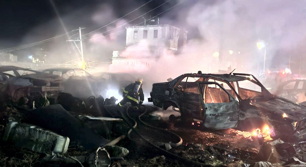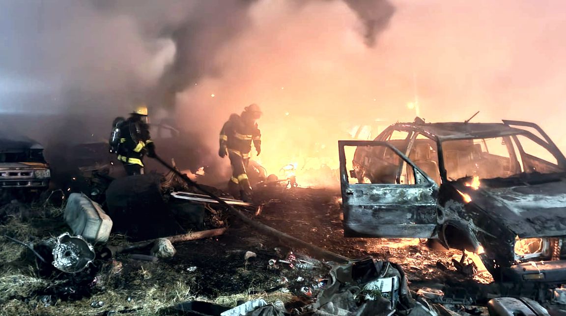 San Andrés Cholula | Once vehículos, la mayor parte fuera de uso, resultaron calcinados esta noche durante un incendio ocurrido en un deshuesadero ubicado en la carretera federal a Atlixco, a la altura de la junta auxiliar de San Francisco Acatepec.