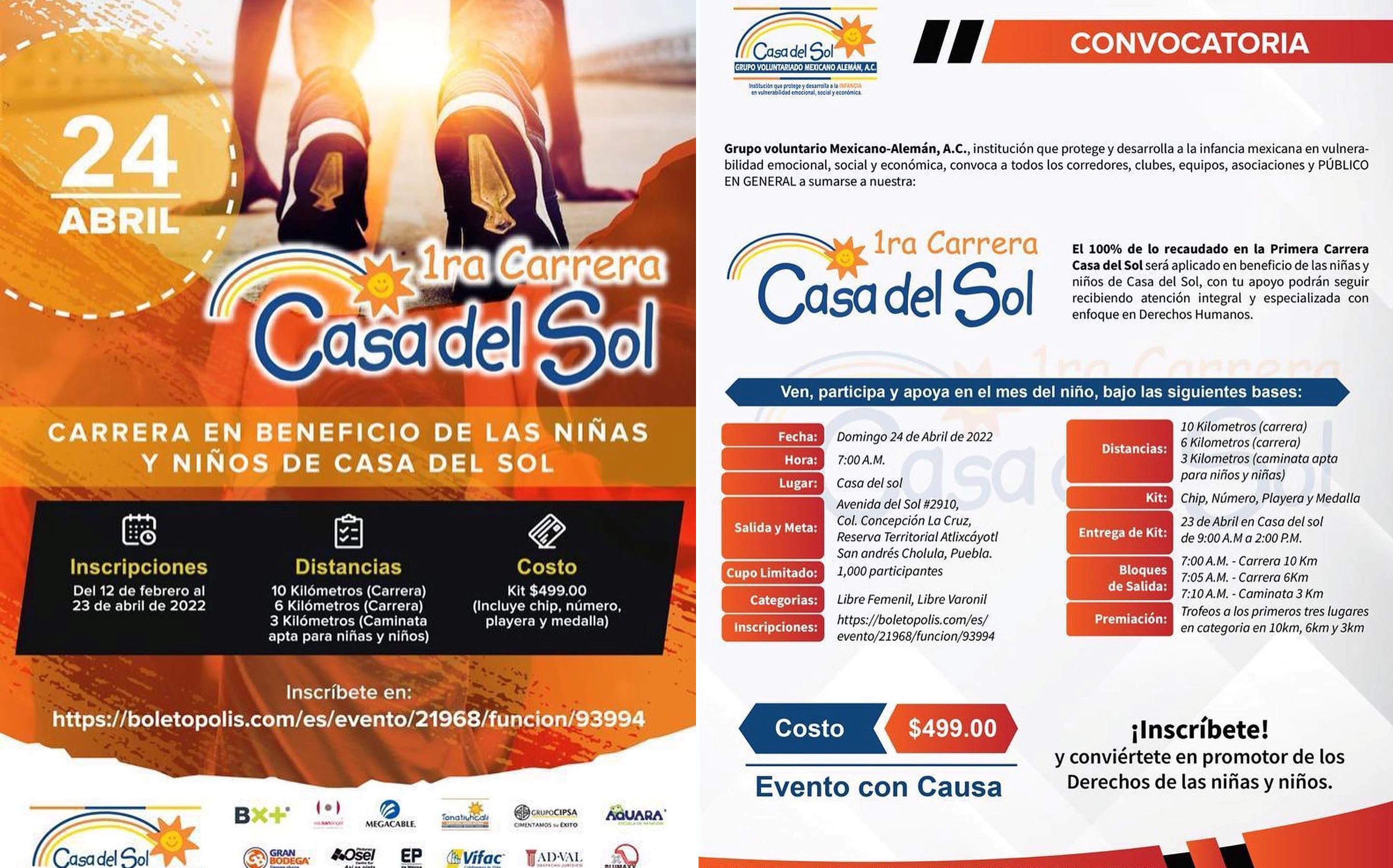 San Andrés Cholula | El próximo 24 de abril se llevará a cabo la Primera Carrera Casa del Sol, cuya recaudación total será aplicada en beneficio de los 64 menores que se encuentran en vulnerabilidad en dicho albergue.