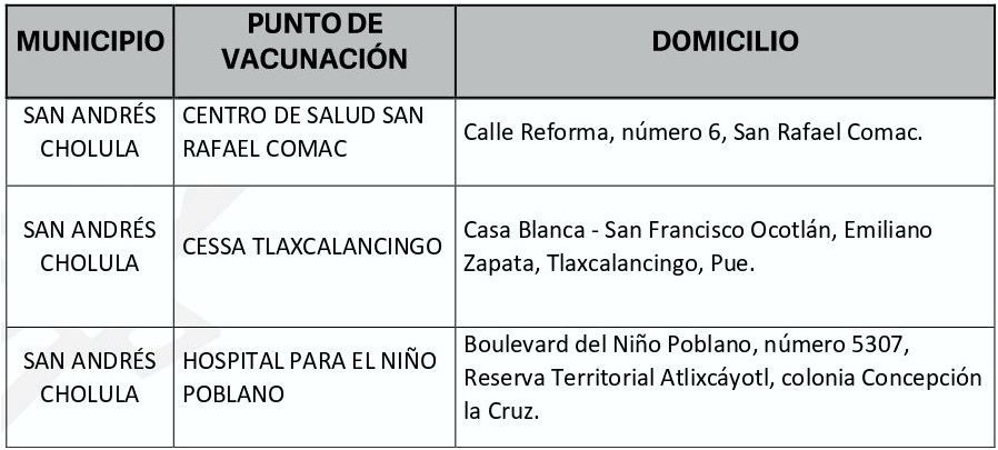 Puebla, capital | El secretario de Salud, José Antonio Martínez García, informó que la jornada de vacunación a menores de 12 a 17 años de los municipios de Atlixco, Puebla, San Martín Texmelucan y San Andrés Cholula será ampliada hasta este sábado 27 de agosto para aplicar la tercera dosis a los adultos de 40, 50 y 60 años.