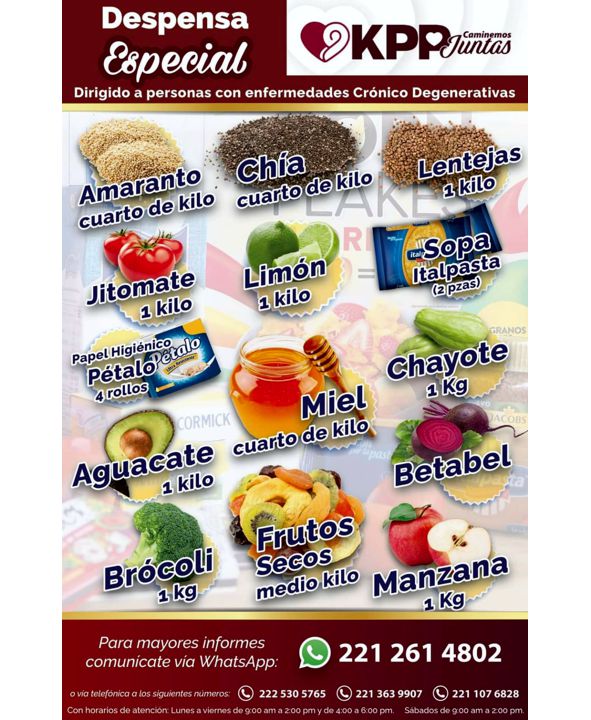 A raíz de estas actividades y la cercanía con personas que atraviesan problemas de salud se entregarán despensas especiales a personas con enfermedades como cáncer, esclerosis múltiple, insuficiencia renal, perdida de alguna extremidad.