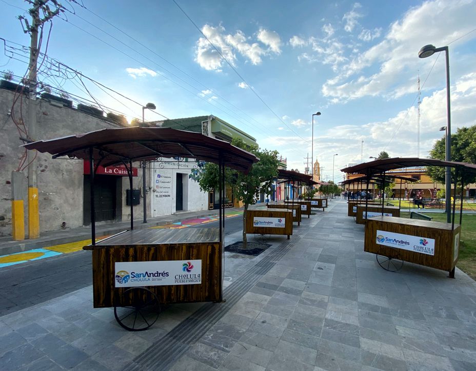 San Andrés Cholula | Con el objetivo de reactivar la economía local y promover la movilidad peatonal en el municipio, el ayuntamiento, en colaboración con los vecinos, transformó con pintura y mobiliario las calles del primer cuadro de la ciudad