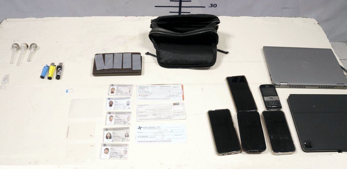 En cumplimiento al protocolo correspondiente, los uniformados procedieron a realizar una inspección preventiva, encontrando en una mochila identificaciones oficiales aparentemente apócrifas. Asimismo, fueron hallados cheques con distintas denominaciones bancarias, plantillas transparentes tipo holograma con el logotipo del Instituto Nacional Electoral (INE), micas transparentes con figuras alusivas a las del INE y hojas que tenían escritos diversos nombres propios.