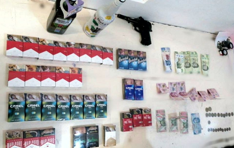 Uno de los delincuentes fue sorprendido dentro del establecimiento con un arma de fuego y una mochila llena de botellas de bebidas embriagantes y cajetillas de cigarros, además de dinero en efectivo, mientras que el otro maleante fue detenido al huir en una motocicleta, al parecer también robada.