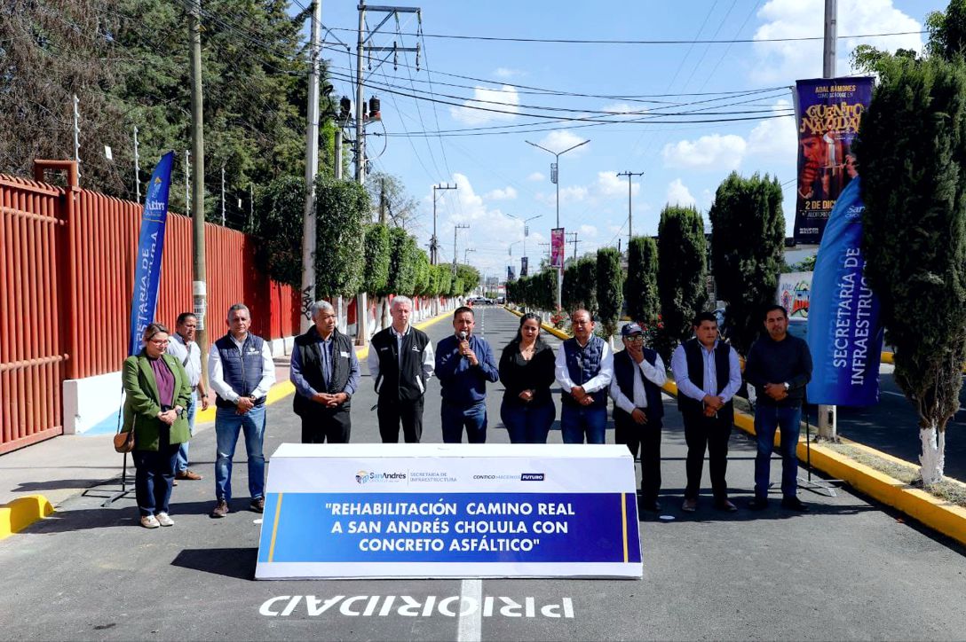 San Andrés Cholula | Con el propósito de generar vialidades dignas y funcionales, el presidente municipal, Edmundo Tlatehui Percino, inauguró la rehabilitación con concreto asfáltico del Camino Real en el tramo que cruza la colonia Emiliano Zapata.