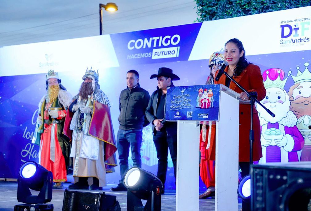 San Andrés Cholula | El edil Mundo Tlatehui Percino y Lupita Cuautle Torres, presidenta del Patronato del Sistema Municipal para el Desarrollo Integral de la Familia (SMDIF), finalizaron en el zócalo el Programa Contigo y con los Reyes Magos Hacemos Futuro.