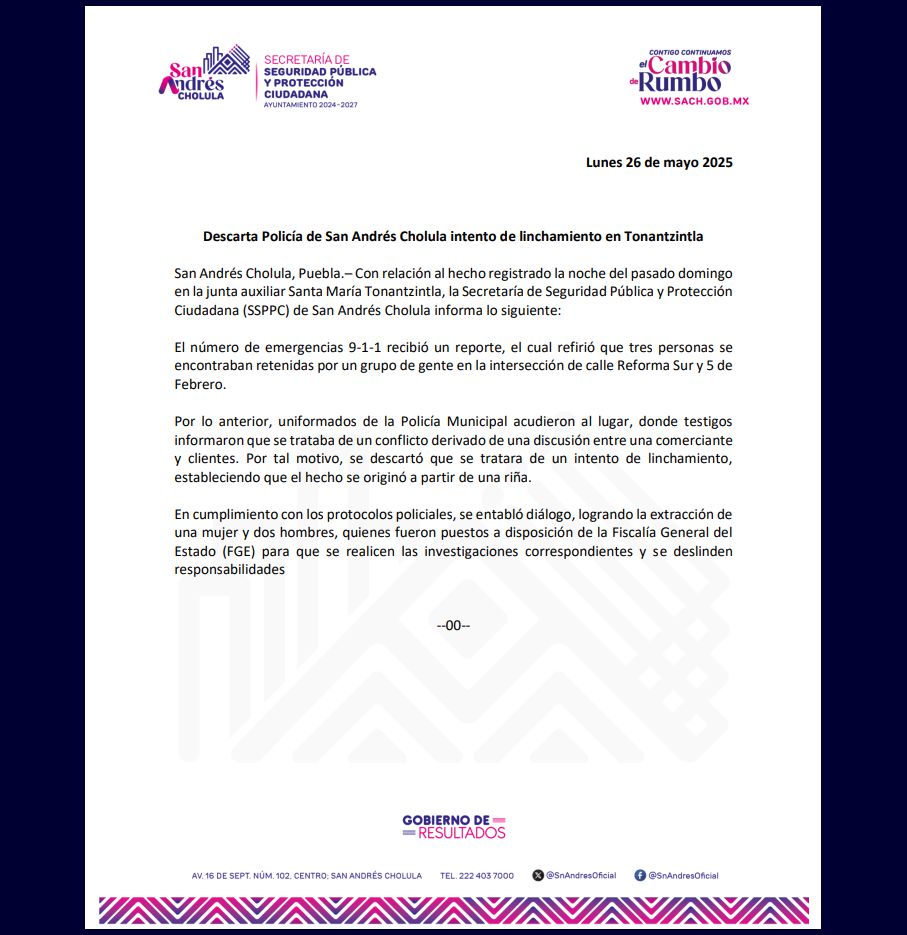 Sin embargo, la Secretaria de Seguridad Pública y Protección Ciudadana de este municipio descartó un intento de linchamiento y precisó que en realidad se trató de una diferencia entre particulares en la intersección de las calles Reforma Sur y 5 de Febrero.