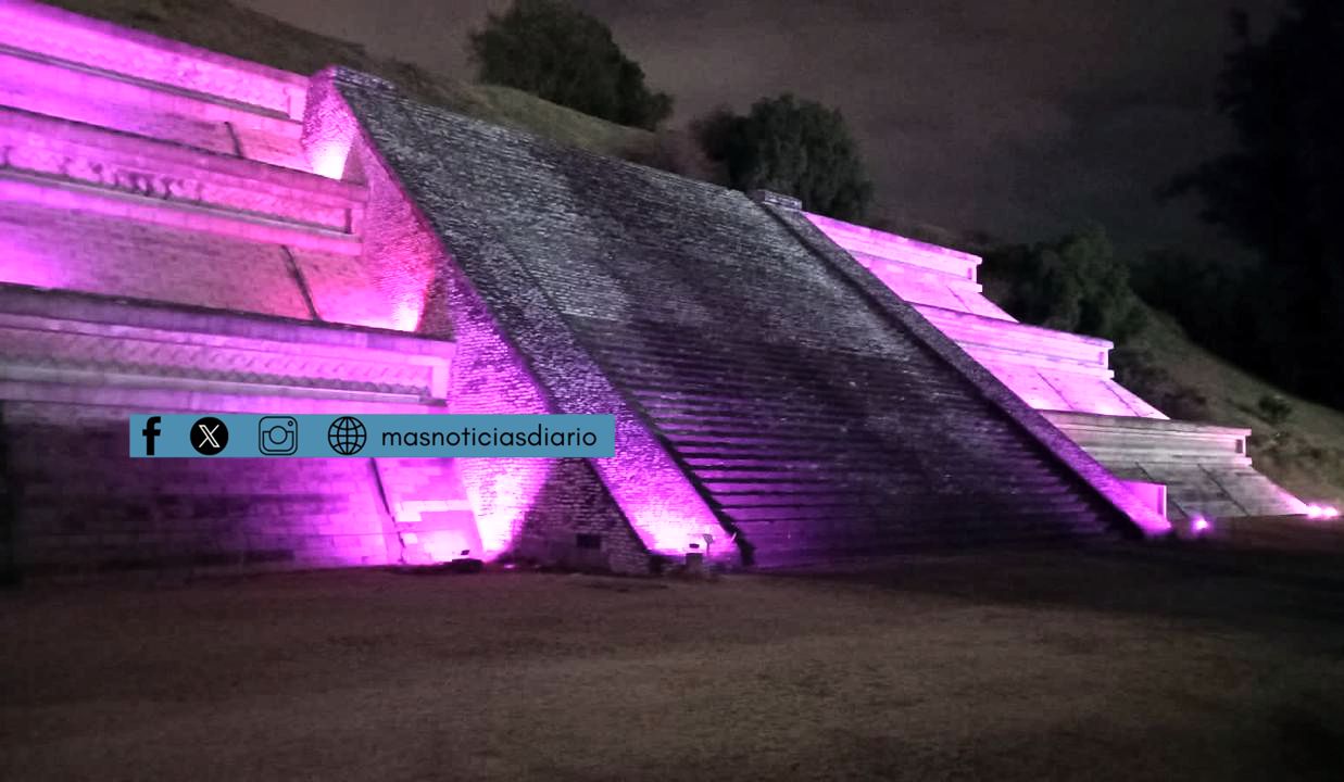 Este edificio prehispánico solo puede ser admirado en todo su esplendor por las mañanas y tardes porque en las noches solo se alcanza a ver el contorno y sombras, bajo el cerro hecho a mano, en cuya cima se encuentra el santuario de la Virgen de Los Remedios, imagen que en poco más de una semana celebrará su fiesta patronal.