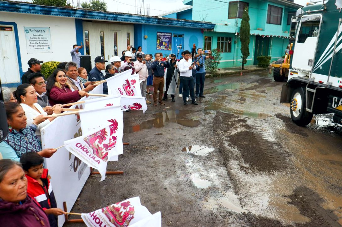 San Pedro Cholula | La presidenta municipal Tonantzin Fernández Díaz dio el banderazo de inicio a la rehabilitación de dos vialidades en las juntas auxiliares de San Agustín Calvario y San Matías Cocoyotla con el objetivo de ofrecer calles más seguras, dignas y transitables.