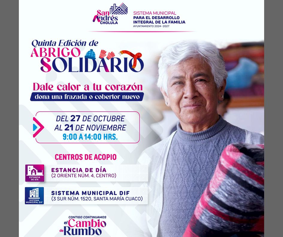 El principal centro de acopio está en la 3 Sur 1520, en las instalaciones del DIF Municipal, organismo que en esta época tiene un mensaje claro para los grupos vulnerables: “Nadie está solo cuando la comunidad se une”, resaltó Tlatehui Cuautle.