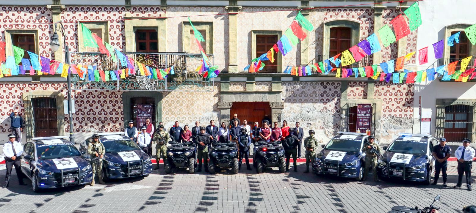 San Pedro Cholula | Cuatro patrullas y tres cuatrimotos entregó esta mañana la presidenta municipal Tonantzin Fernández Díaz a la Secretaría de Seguridad Ciudadana.