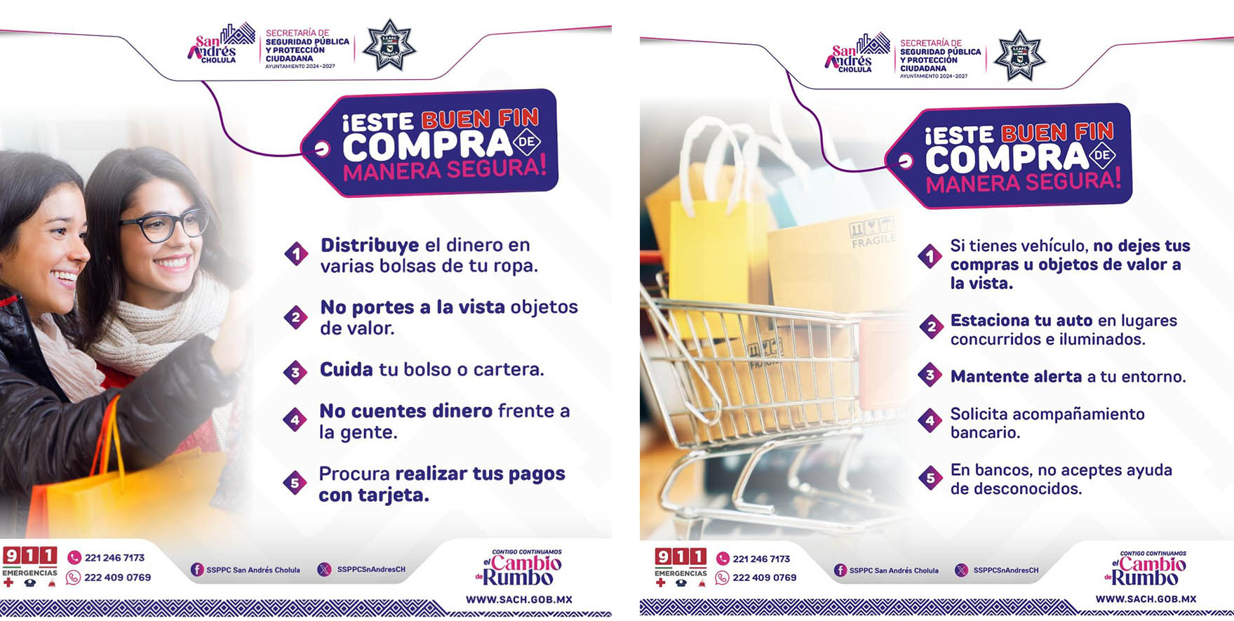 Como parte la estrategia municipal de seguridad ciudadana Contigo Construimos Seguridad, adicionalmente la SSPPC emite las siguientes recomendaciones para realizar compras de manera segura: