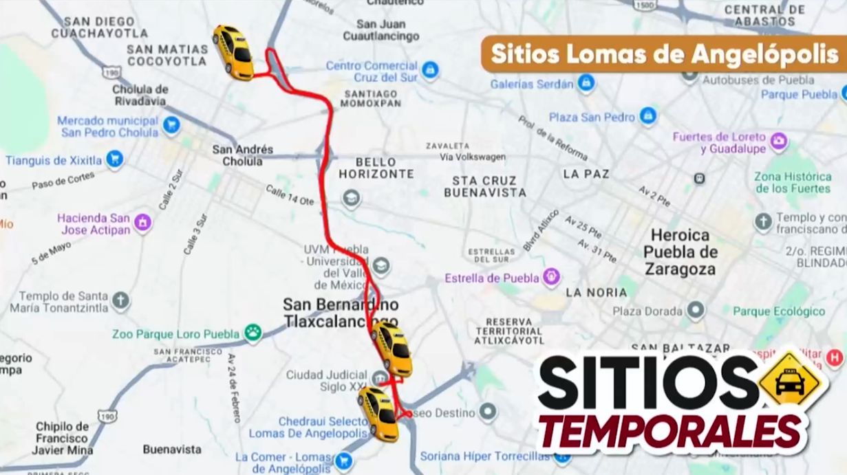 Puebla, capital | La Secretaría de Movilidad y Transporte (SMT) habilitó rutas temporales de transporte público y sitios provisionales para taxis colectivos en la zona metropolitana, como medida emergente ante la escasez de unidades derivada del incumplimiento de la revista vehicular obligatoria.