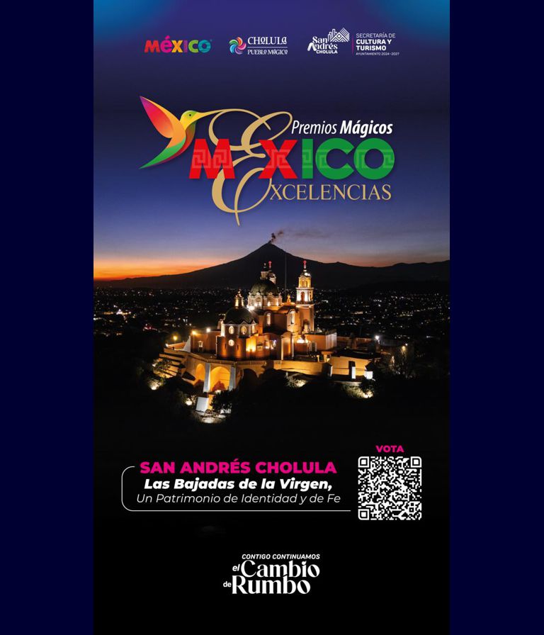 San Andrés Cholula | Con el proyecto “Las Bajadas de la Virgen de los Remedios, Un Patrimonio de Identidad y de Fe”, el Pueblo Mágico de Cholula compite por el premio Excelencias 2026 en la categoría de Turismo Religioso.