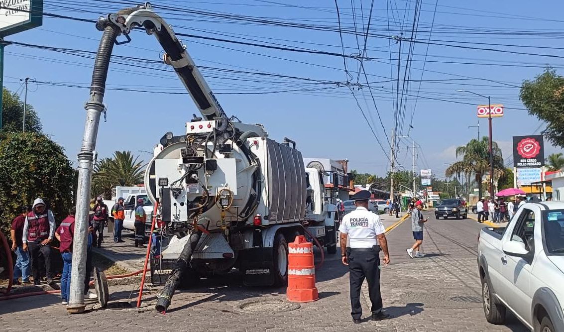 San Pedro Cholula | En coordinación con Infraestructura, Protección Civil y el Organismo de Limpia, el Sosapach desazolva y da mantenimiento a la red de drenaje sanitario y pluvial en zonas identificadas como susceptibles a afectaciones durante la temporada de lluvias.