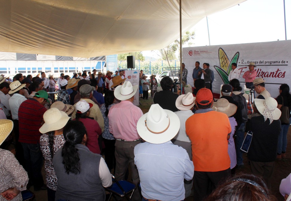 Precisamente, se entregó a productores del municipio un 65 por ciento de fertilizante orgánico y el resto de origen químico para apoyar la economía familiar de los productores.